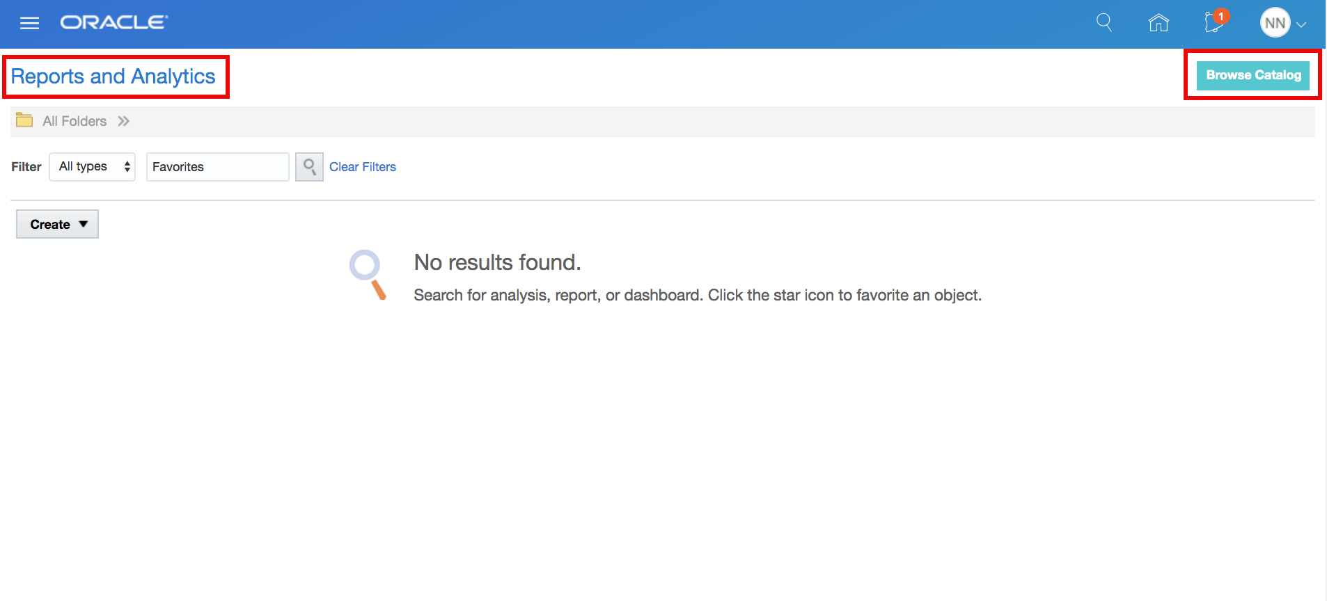 In the main page for Reports and Analytics we must use the button Browse Catalog to find our custom objects.