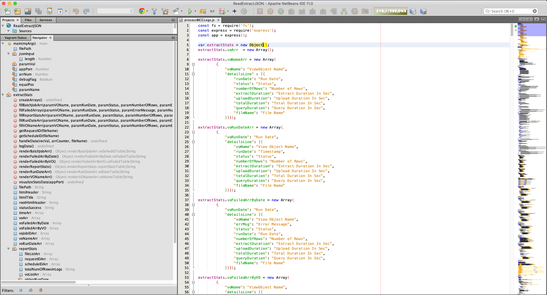 As Node.js works in an asynchronous manner, the entire processing of log file data must be kept within the loop for reading the EXTRACT.JSON files.