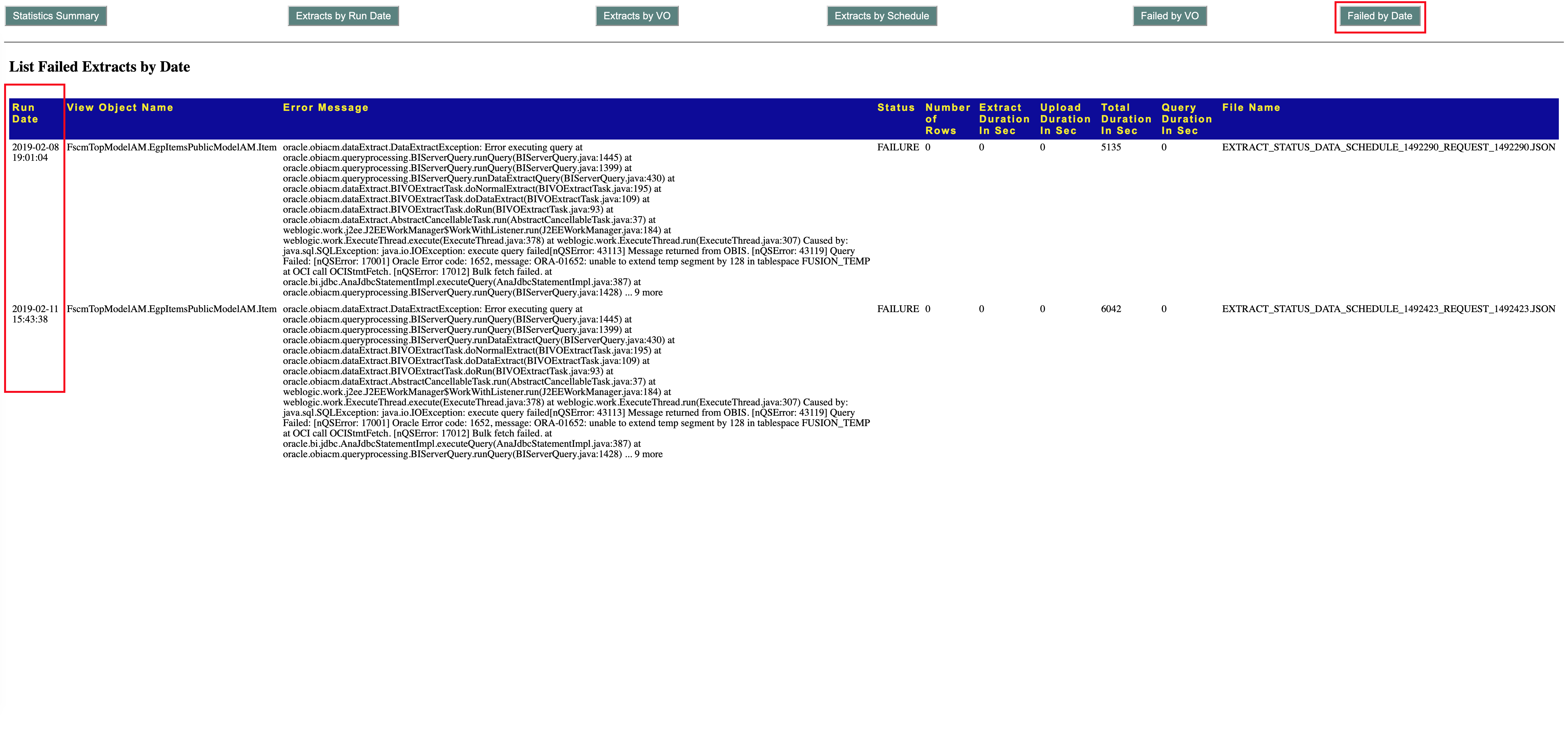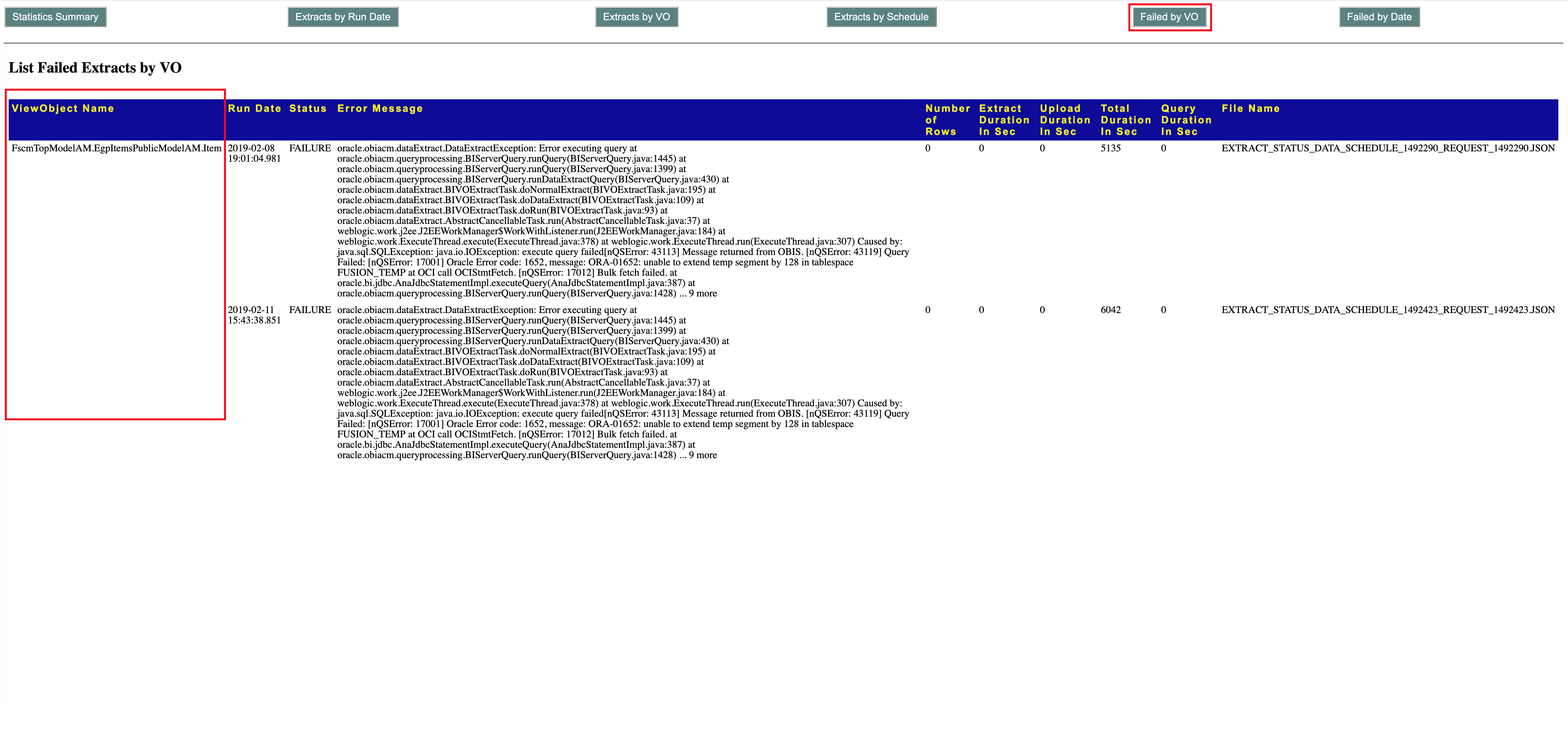 • BICC Extract for VO Primary Keys being used if this extract option has been activated in the definition of a run