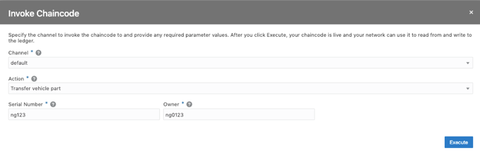 Now we have created the vehicle part and logged it in the Blockchain with its Transaction ID, lets now transfer the part to another user.
