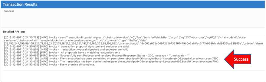 Once you are on your block id, under TxID (Transaction ID), click the arrow to reveal the details of the transaction, verifying the transaction table has “Success”.