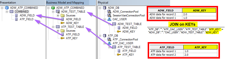 It is possible to join the data in the RPD if desired and create a combined presentation table.