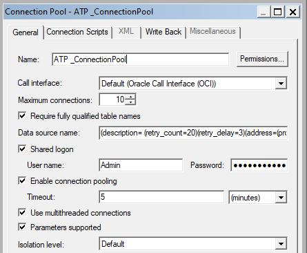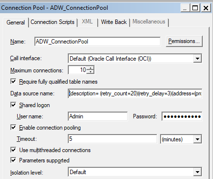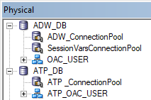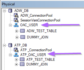 In this example the Connection Pool connects as Admin. However, the reporting schemas are OAC_USER (ADW) and ATP_OAC_USER (ATP).