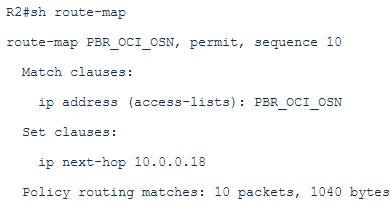 Now, we want to send the traffic to the next-hop 10.0.0.18 which is the public FastConnect peer based on the PBR defined above.
