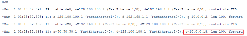 The debug on the CPE confirms that for forwarding this traffic, the next-hop 10.0.0.18 has been used as per the PBR defined above and applied on the interface:
