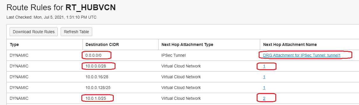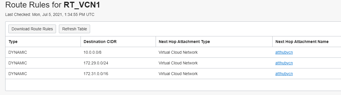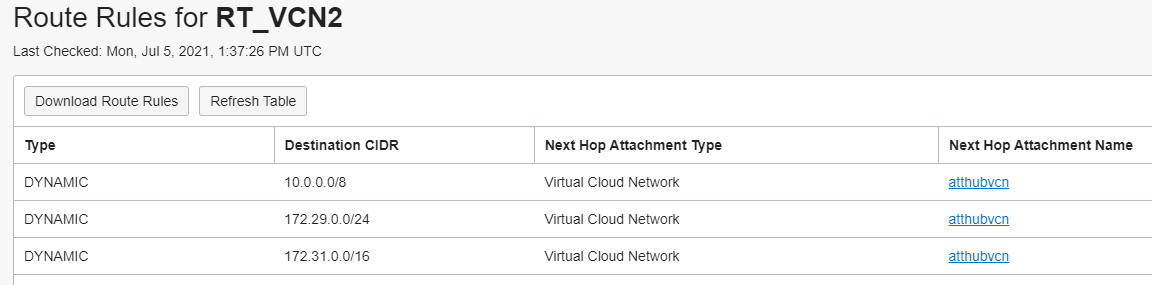 For a better understanding, we will start showing what we are importing in the RD associated to the HUB VCN attachment RT: