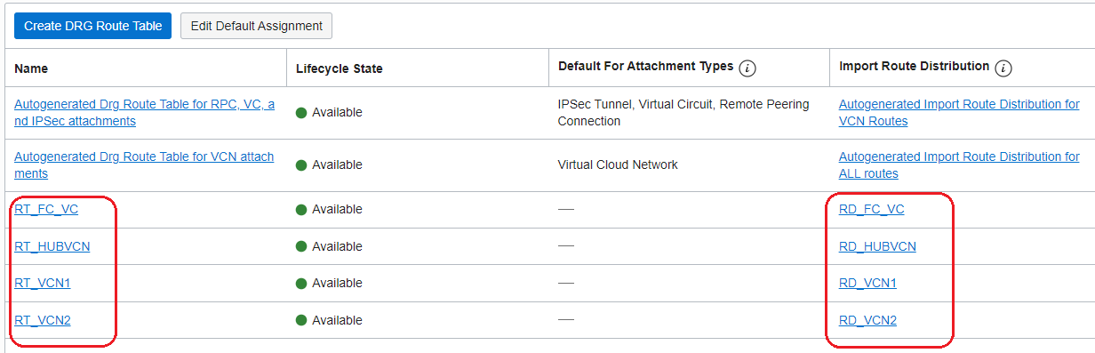 2. DRGv2 Import Route Distributions and Route Tables configuration