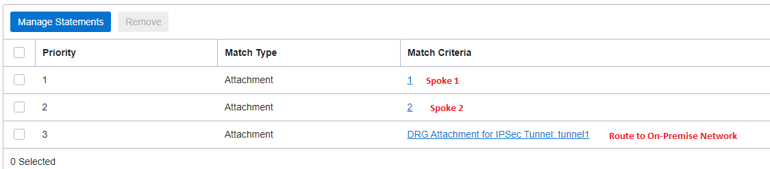 One important note: if we will not use the static routes and instead use the import function matching the HUB VCN attachment, a routing loop on the On-Premise router might happen if a proper BGP filter is not configured. I will let you find why this might happen.