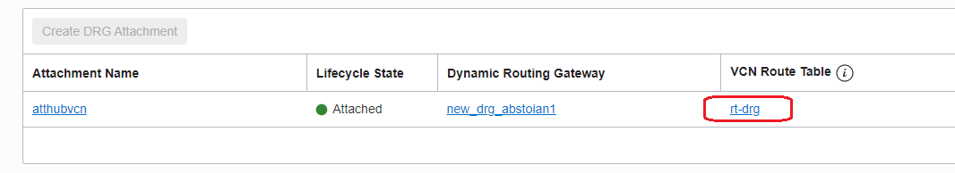 We need to enable the transit routing and make the DRGv2 to send all the traffic for 10.0.0.0/8 to the private IP address of our NVA. This will be done by attaching a VCN route table to the DRG. The table will use the HUB VCN: