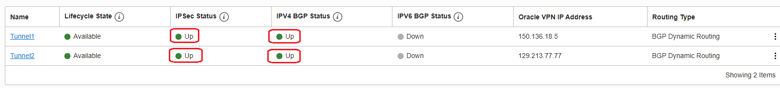 The source and destination are different for each flow and this will trigger the ECMP to be implemented by the DRGv2. In order to prove the ECMP is implemented, we will start two tcpdumps on the CPE over vti2 (Tunnel1) and vti3 (Tunnel2) interfaces, each interface is connected to its respective OCI BGP peer.