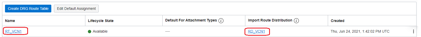 2.2 On the DRGv2 create a Route Import, attach the Route Import to a new created Route Table, attach the Route Table to VCN 1 attachment