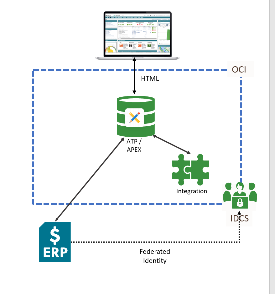 This approach is however a DIY solution, the developer will need to provide services (like an OCI based webserver) to host the HTML5 artifacts (e.g. html,javascript,css etc) and then code/configure identity management integration with Oracle Identity Cloud Service so that you have some level of single sign on and identity propagation.