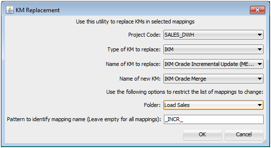 Note that in the example above, any mapping with a name that includes the substring _INCR_ has its IKM replaced (if the KM matches the other search criteria of course).