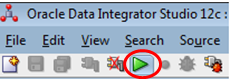To run a script, make sure that the mouse cursor is in the script and click the ODI Run button in the Studio toolbar: