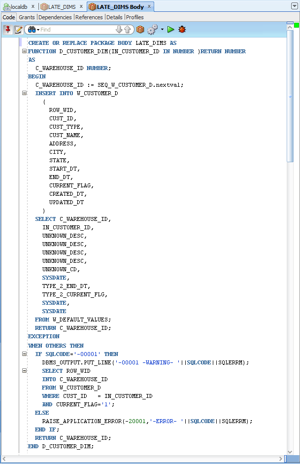 Figure 2: PL/SQL function LATE_DIMS.D_CUSTOMER_DIM