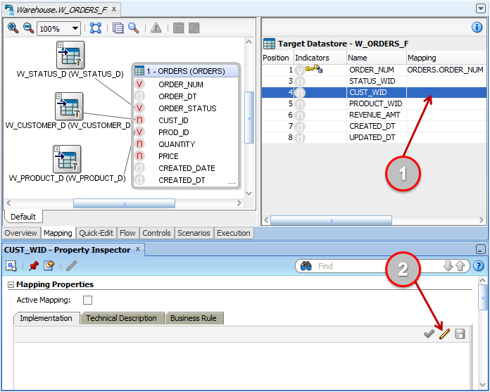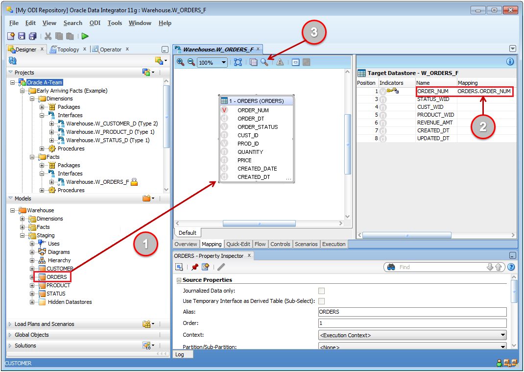 - Mapping Warehouse Keys of the Fact Table with ODI user functions – In this section, I am going to illustrate how to map warehouse keys of the fact table with ODI user functions in our Early Arriving Orders Fact Interface.