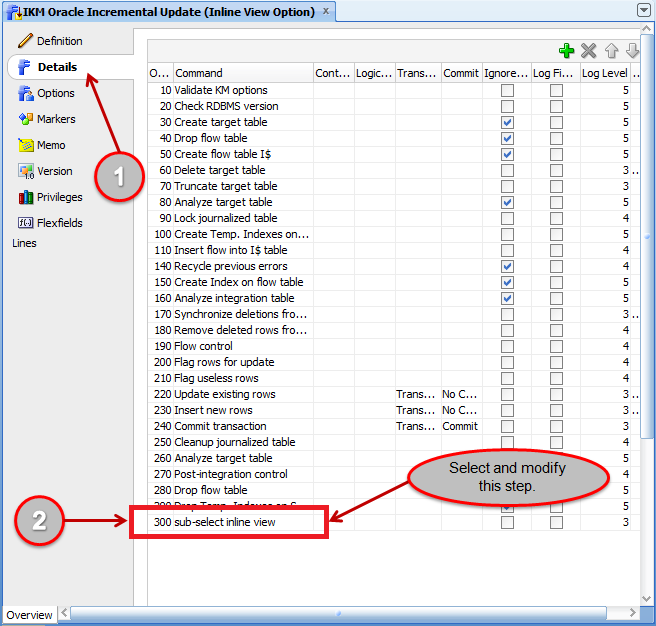- Modifying “IKM Oracle Incremental Update” – This KM will be modified to make optional step “sub-select inline view”. This step is not required by the Orders Fact interface.
