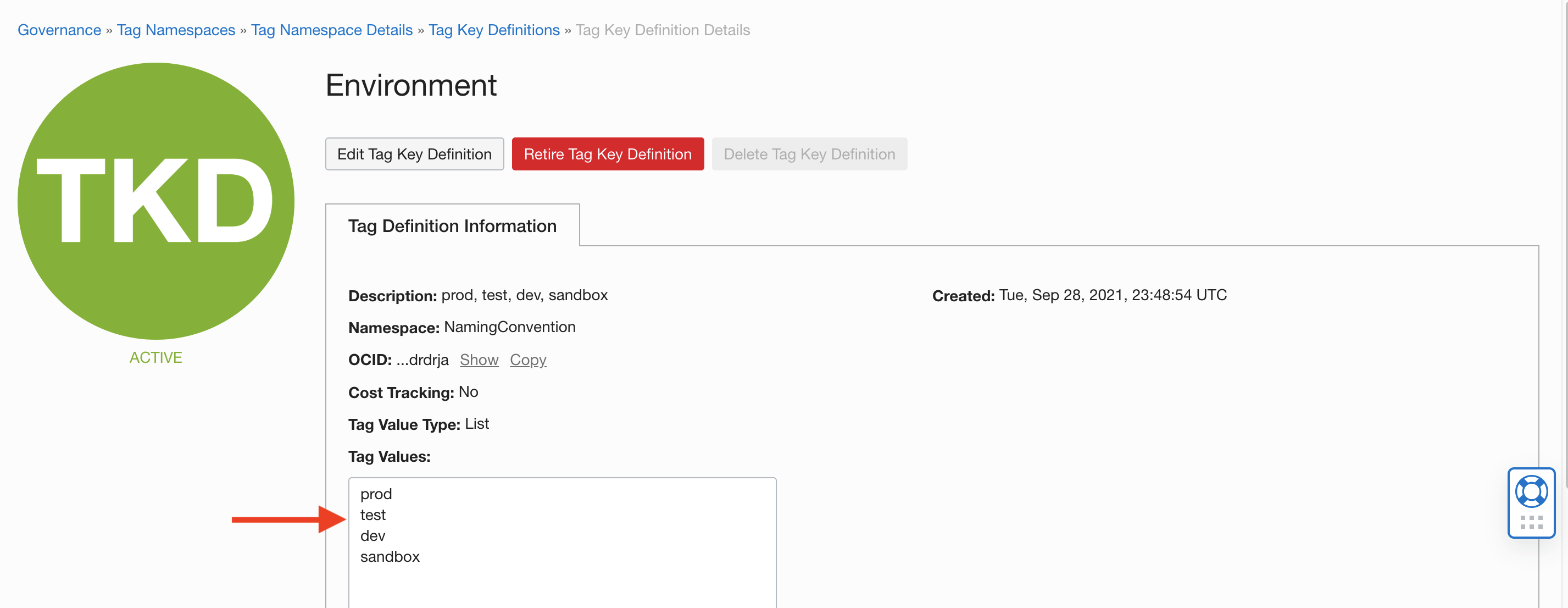 To achieve adherence to the above naming convention, tag namespaces with predefined values and default tags can be used. To start with, create a Tag Namespace in the root compartment and give a name to it say, “Naming Convention”.