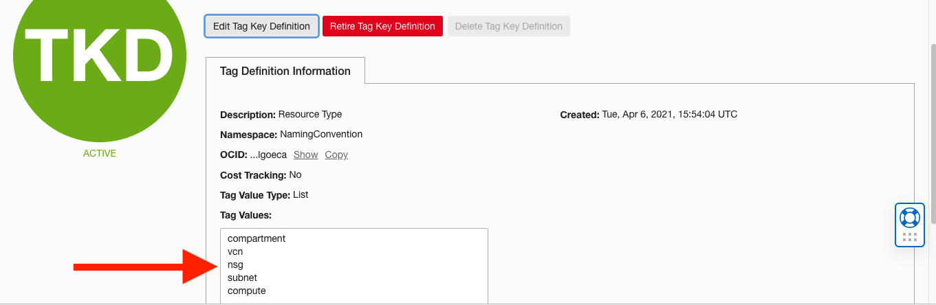 Resource Tye: a predefined tag with the list of all OCI resources being used –