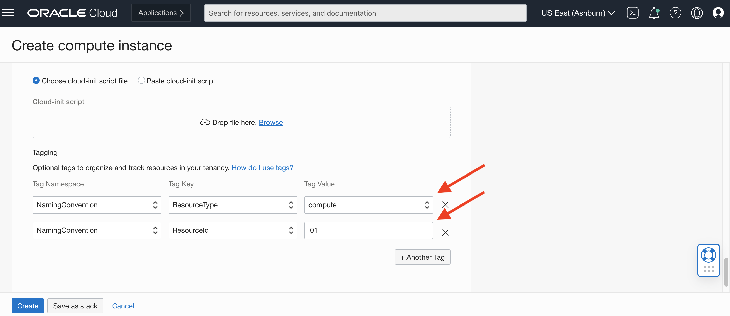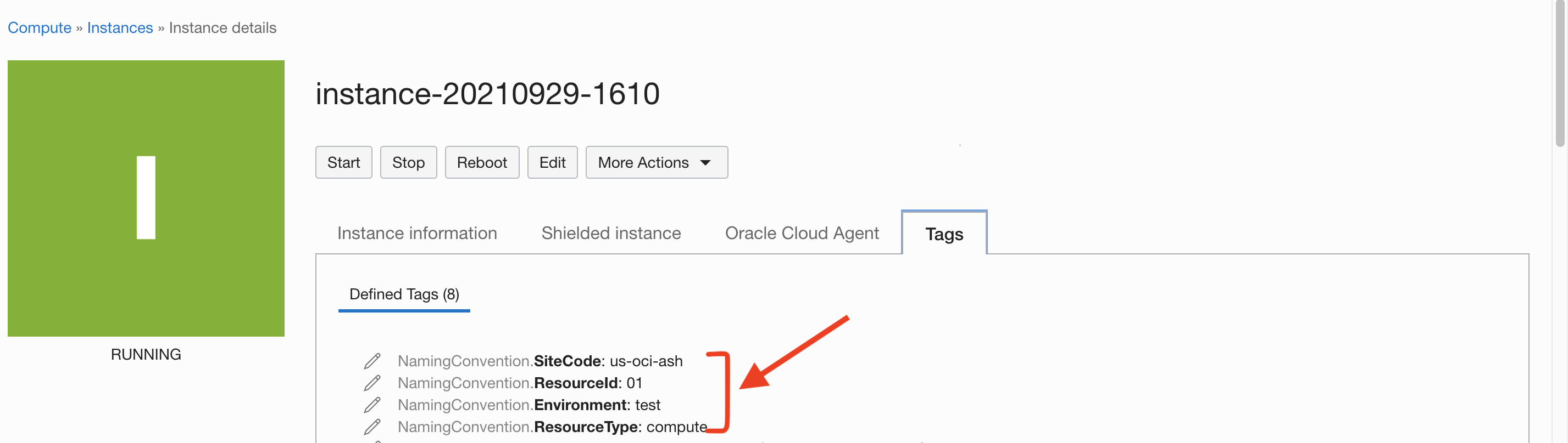 The above compute instance complies with the naming convention: <us-oci-ash, test, compute, 01>.