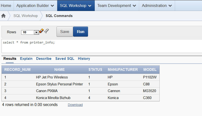 INSERT INTO PRINTER_INFO(RECORD_NUM,Name,Status,Manufacturer,Model) VALUES (i,l_col1,l_col2,l_col3,l_col4);