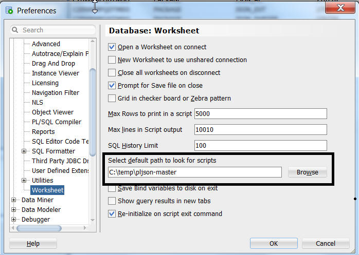2.7 – If running the install.sql though SQLDeveloper, change the “select default path to look for scripts” to match where the zip file was extracted.