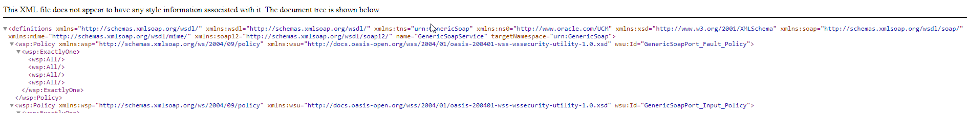 In order to implement this solution the WebCenter / UCM idcws/GenericSoapPort?wsdl must be publicly available.