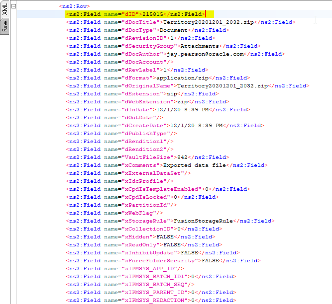 For “GET_SEARCH_RESULTS” the non-XML components of the file are removed, and the data is saved as XMLTYPE so that the namespace can be used to retrieve the “dID”.