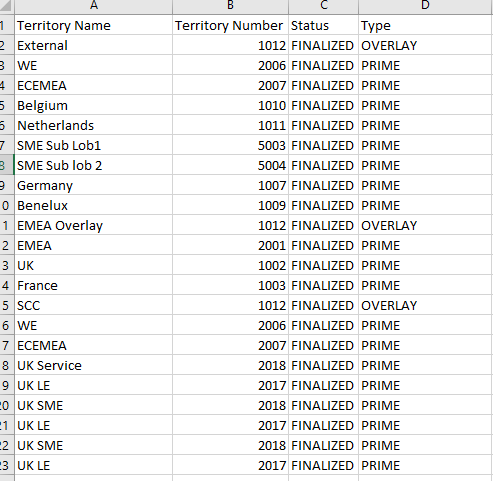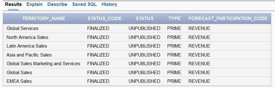 CREATE TABLE OAC_USER.TERRITORY_INFO( Territory_Name VARCHAR(100), Territory_Number VARCHAR(100), Status VARCHAR(100), Type VARCHAR(100) );