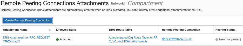 If everything is configured correctly, Peer Region status will change to Pending (Orange), and then to Peered (Green). If something is incorrectly configured it will show as Invalid (Red) and you will need to delete the RPCs on both ends and try again. Check the policies and the OCIDs to make sure it is configured properly.