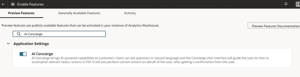 Then on Preview Features, search “AI Concierge”: