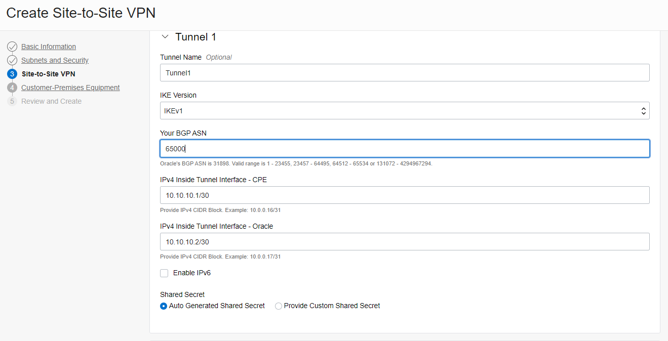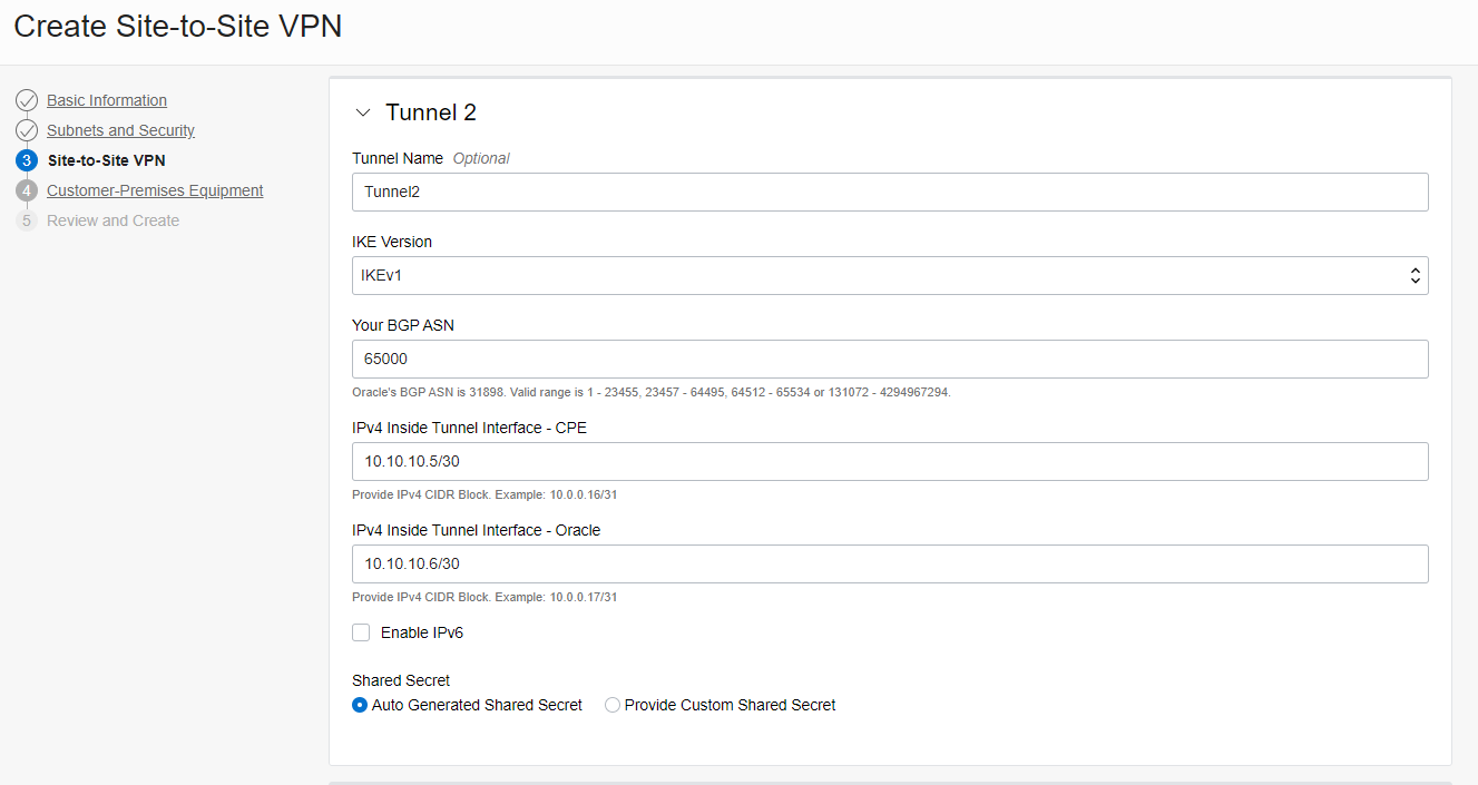 - Enter the name of the Tunnel 1 and Tunnel 2, BGP ASN, and subnets