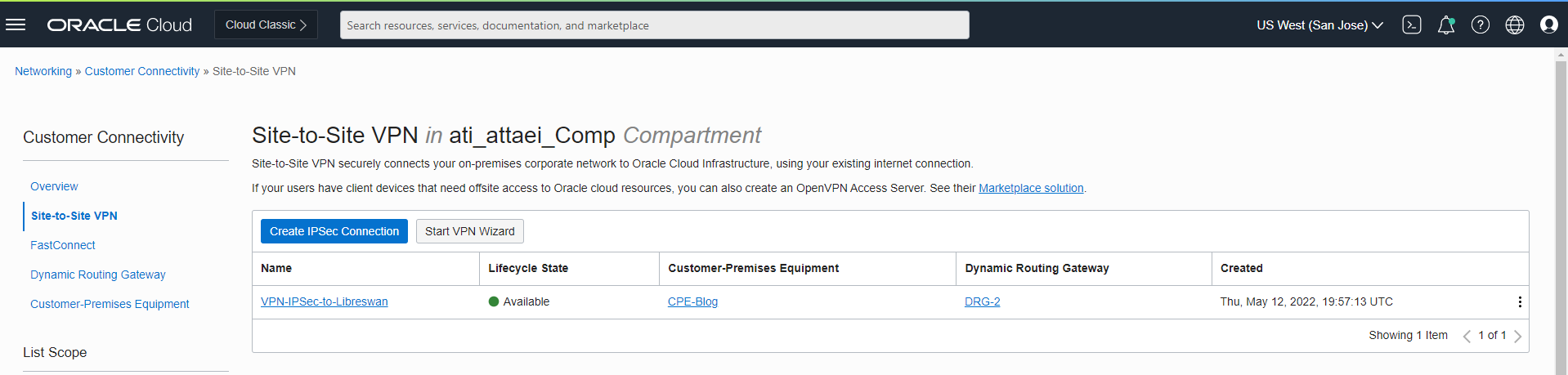 We will deploy Libreswan (Opensource VPN software) to a public Linux VM in the OCI Ashburn region and, I will create an IPSec VPN connection from the San Jose region to this Linux VM.
