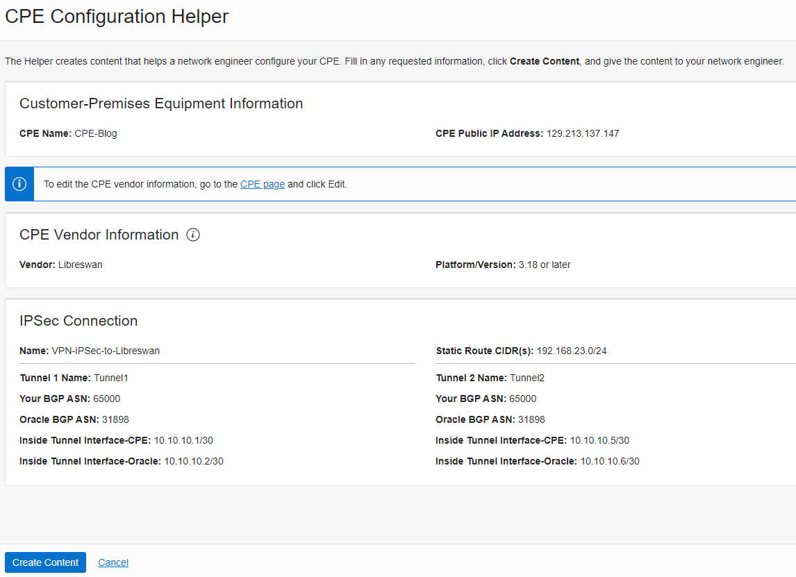 Now create the secret files . You may use the template provided by the Oracle documents to fill out the PSKs and IP addresses via CPE Configuration Helper)