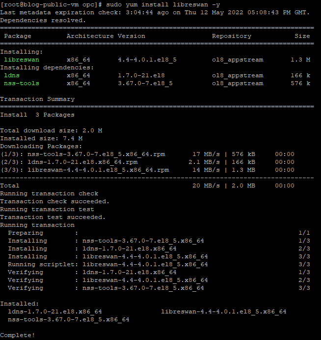 Now it’s a time to log in to your existing Linux VM, Install, and configure the Libreswan
