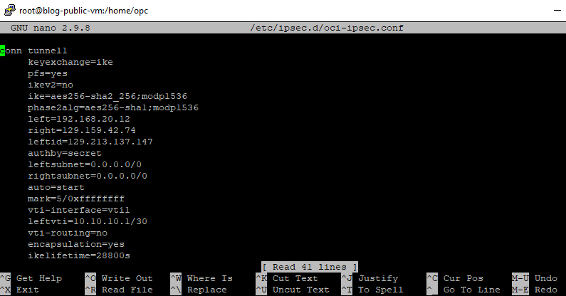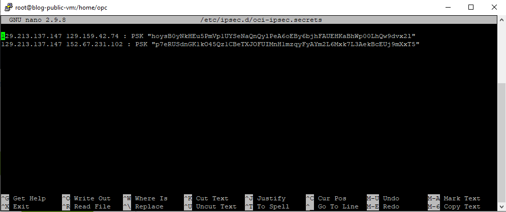 “nano /etc/ipsec.d/oci-ipsec.secret”