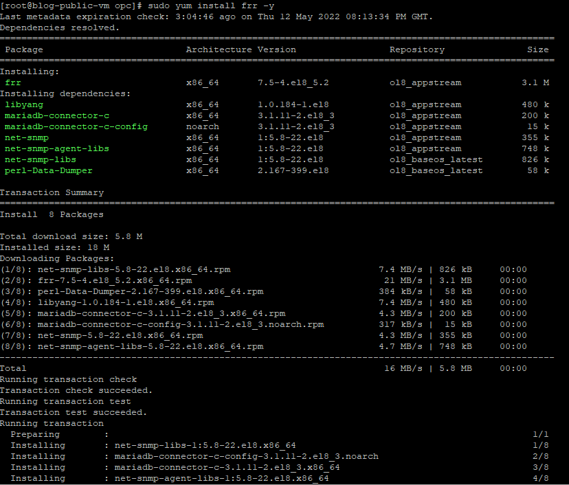Install FRR (FRR version 7.5-4.e18_5.2)