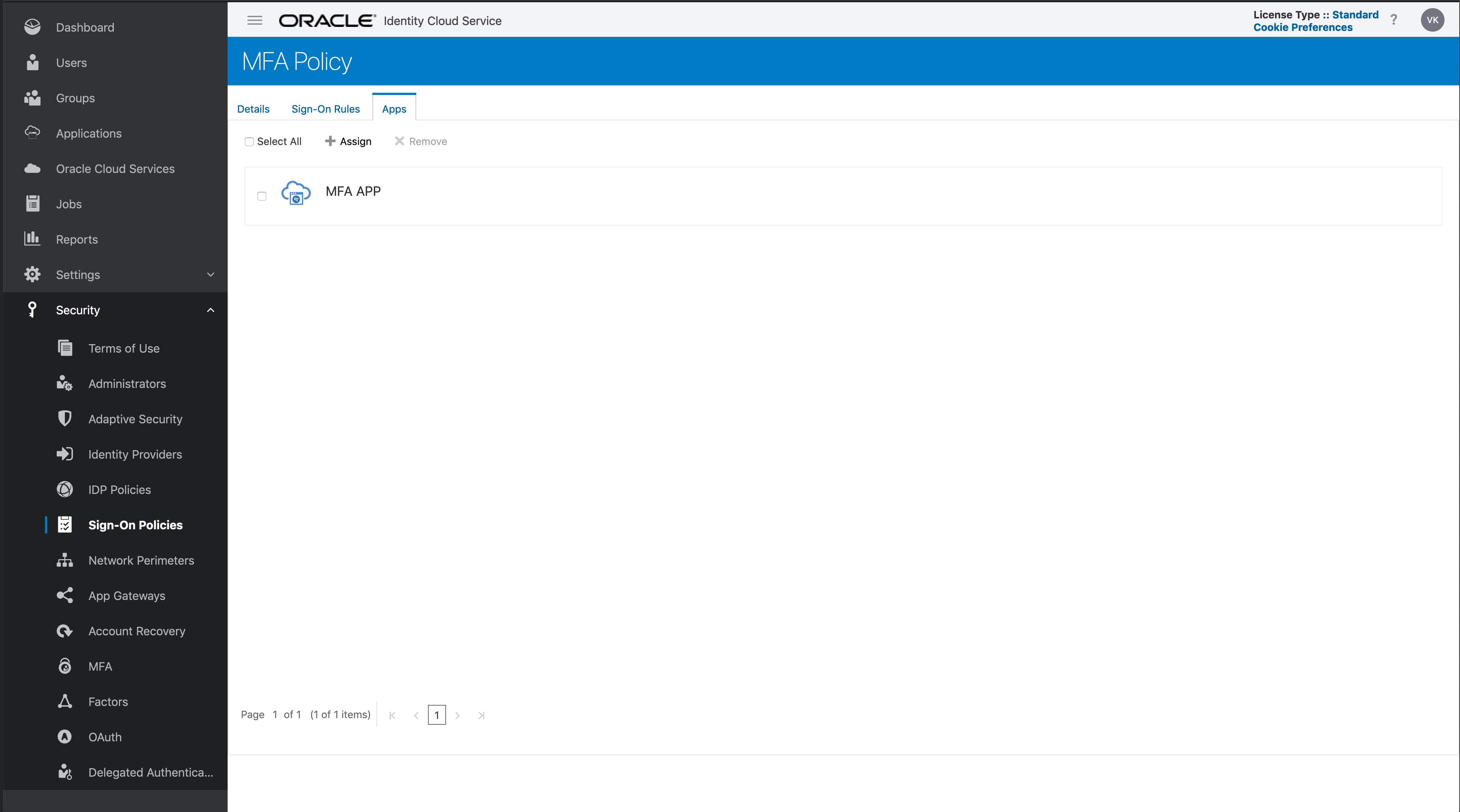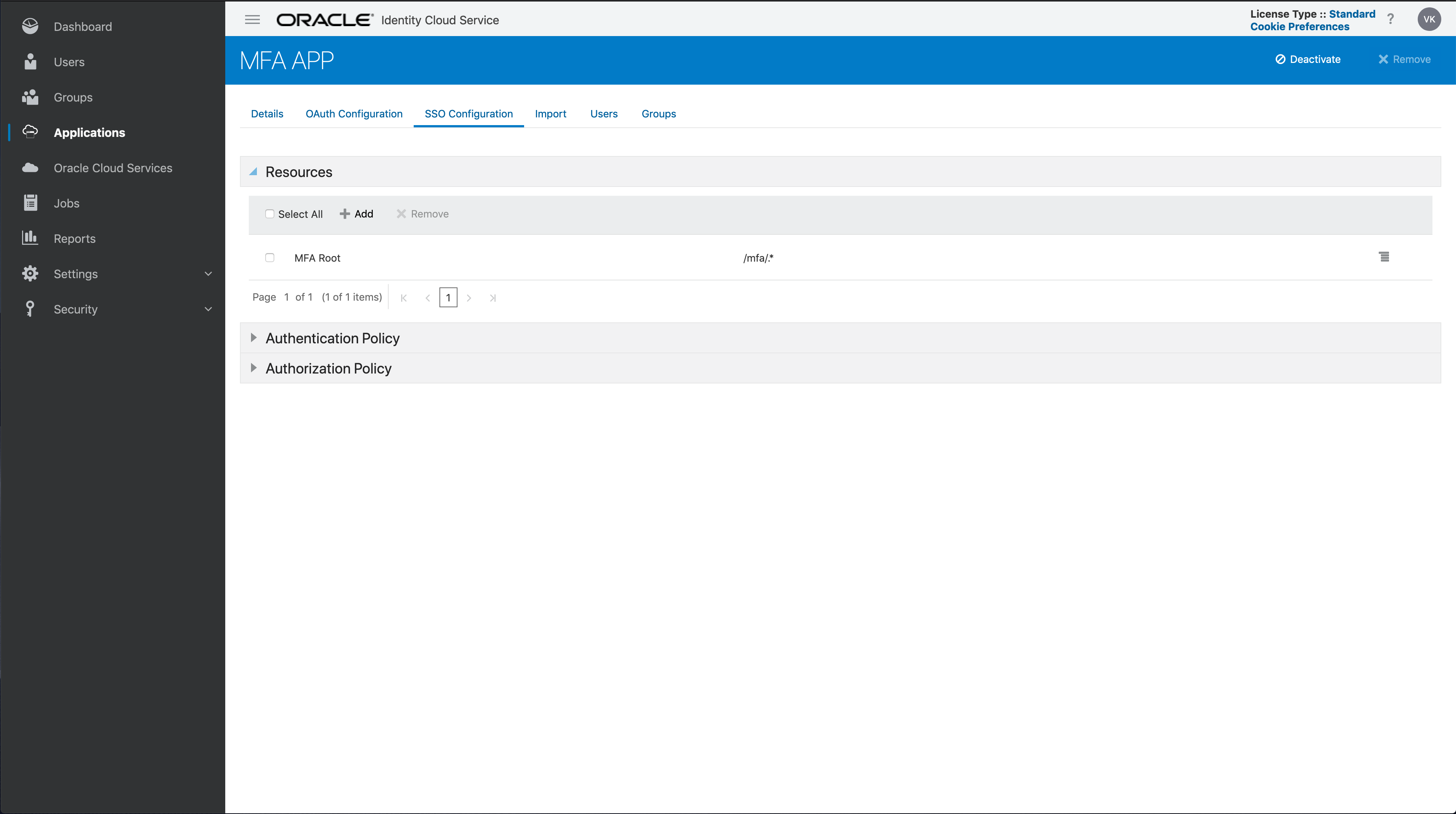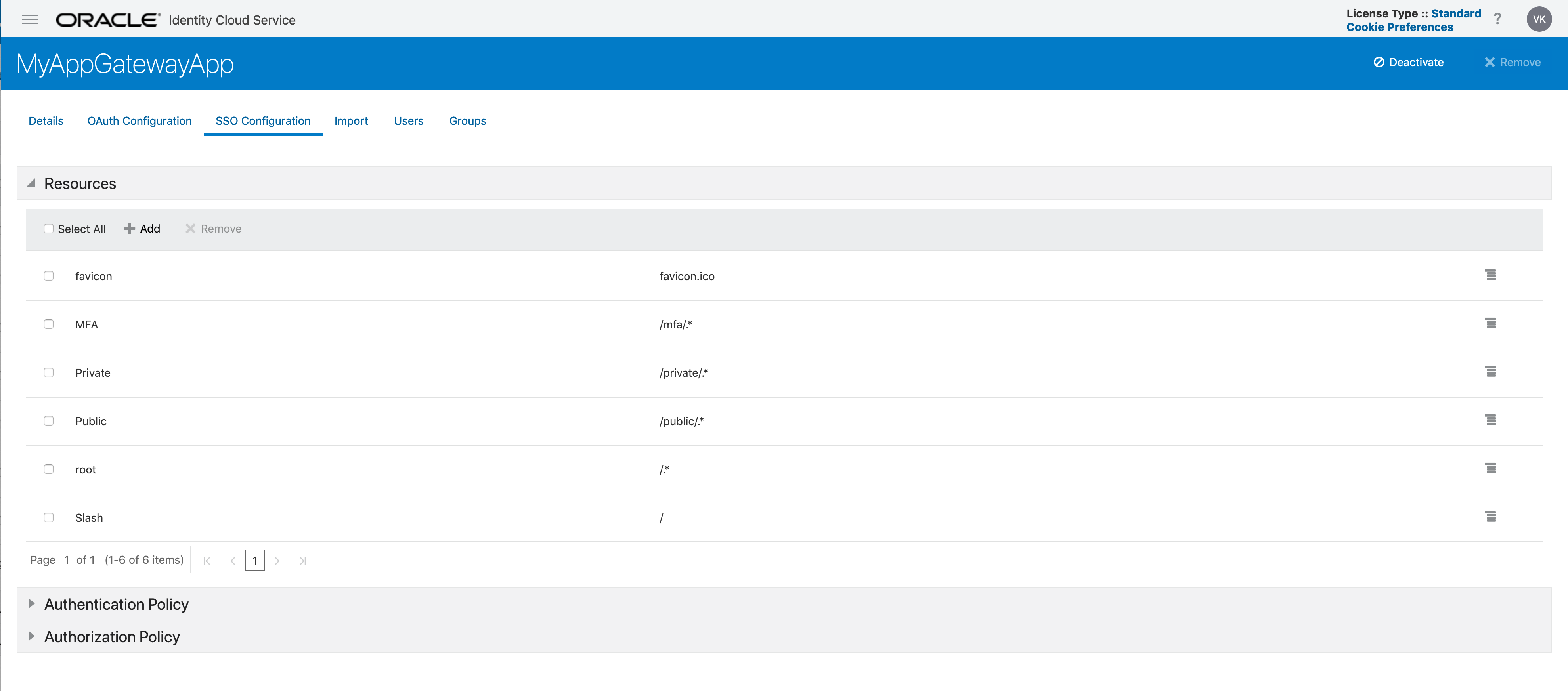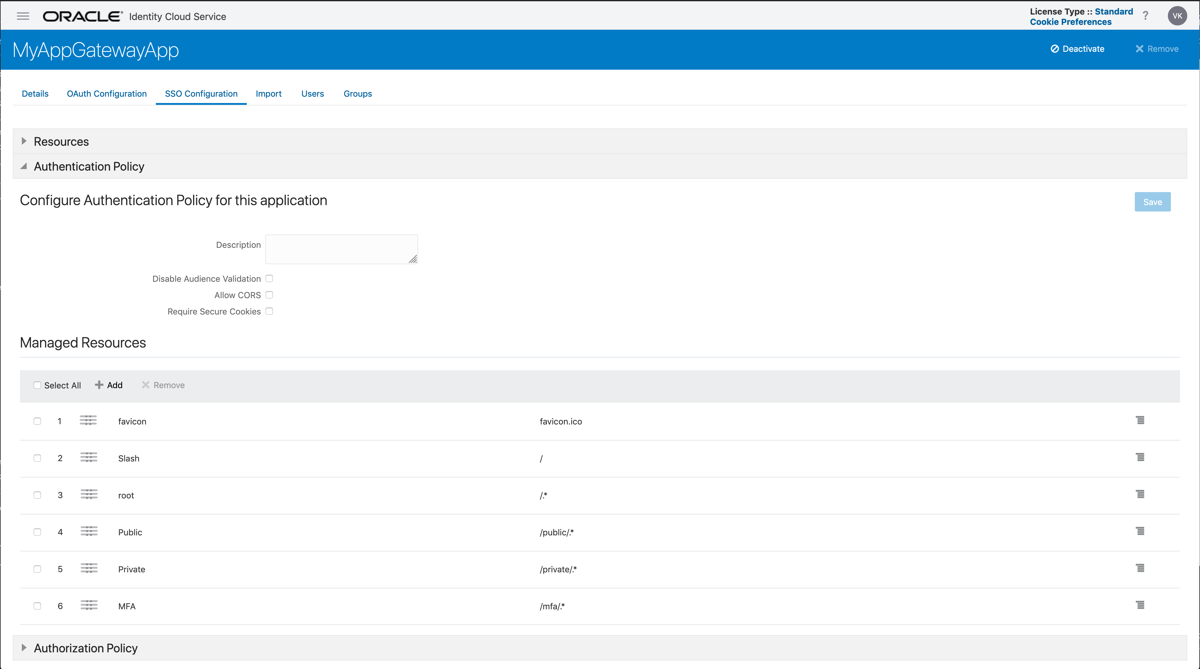 You may have noticed that the resources defined in Enterprise Application configuration has all the resources defined including the “/mfa/.*” URL. However, when configuring IDCS to a specific sign-on policy it is based on the application. Since “/mfa” is defined within the Enterprise Application, there is no way to distinguish which policy to use between say “/private/” and “/mfa/”. They both will use the username-password Sign-on Policy which is the default in IDCS.