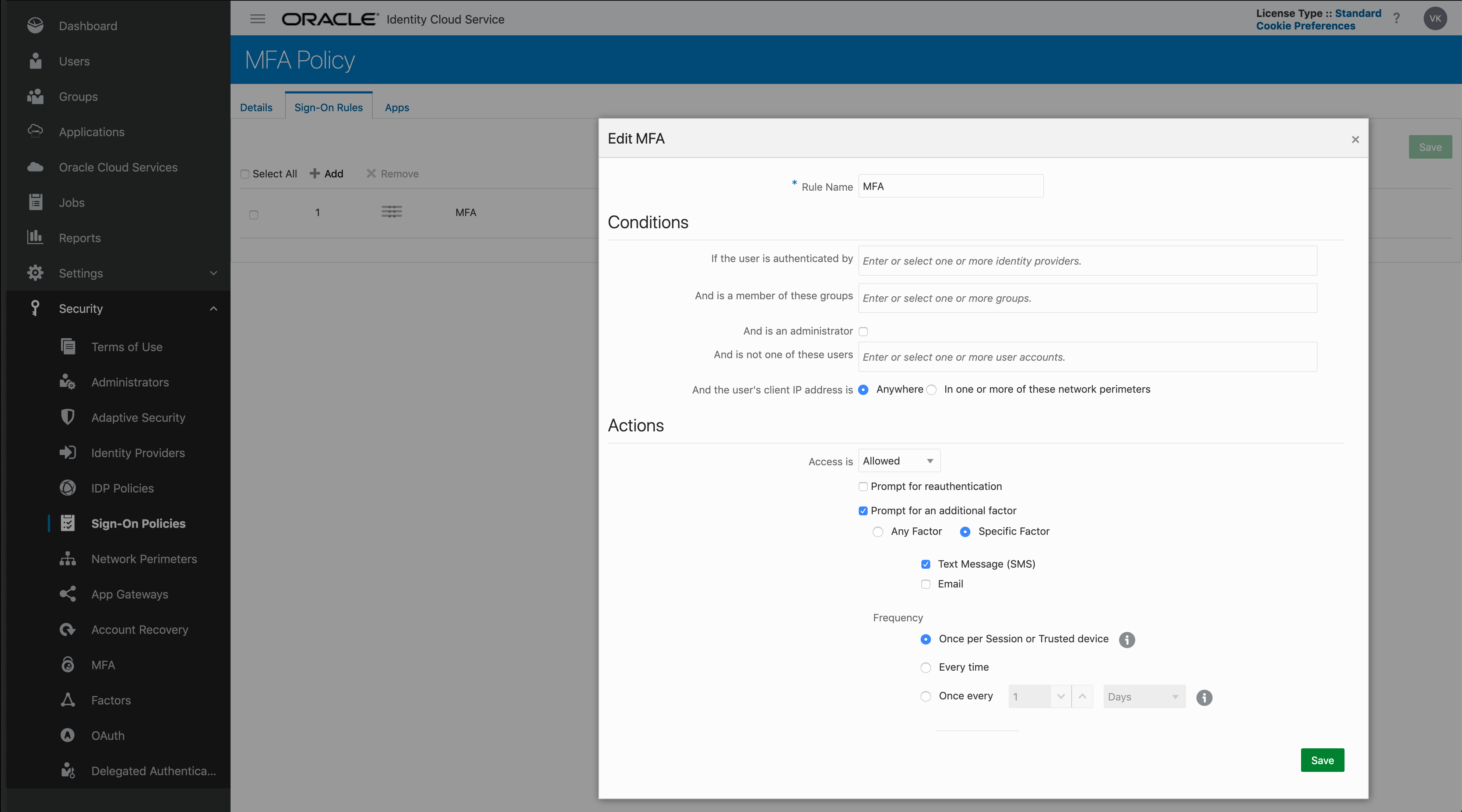 Here is the MFA (Sign-on) Policy with the Sign-On Rule you need to specify at minimum: