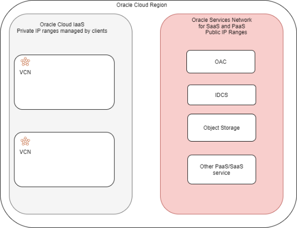 Each service from the OCI PaaS and SaaS portfolio is deployed in a dedicated services network that exists in every OCI Region.
