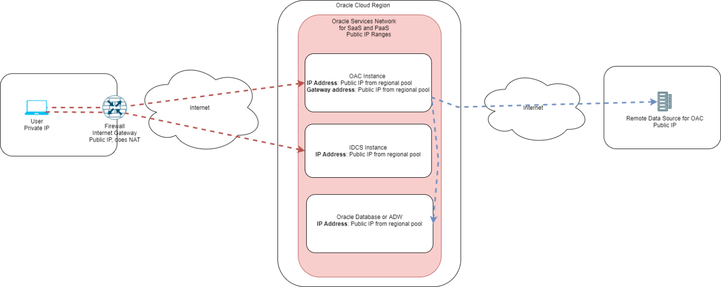 • This scenario is focused on user access to the OAC instance. The connectivity between OAC and its data sources remains over the Public Internet.
