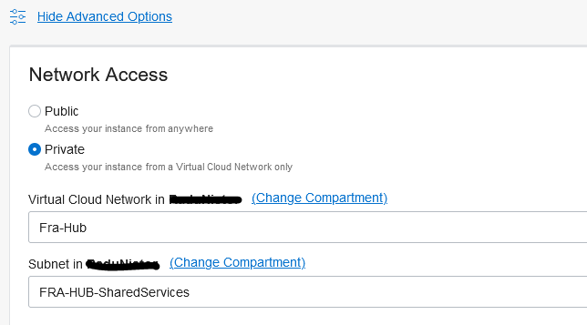 The OAC instance can be deployed with a private endpoint meaning it will have a private IP from a VCN private subnet. To deploy a private OAC instance, select Advanced Options in the deployment page and select “Private” under Network Access. You need a VCN and a Subnet in the same region.