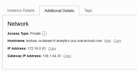 • Example: oac-name.analytics.ocp.oraclecloud.com pointing to the private IP.