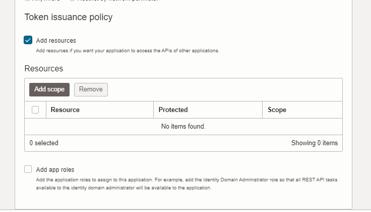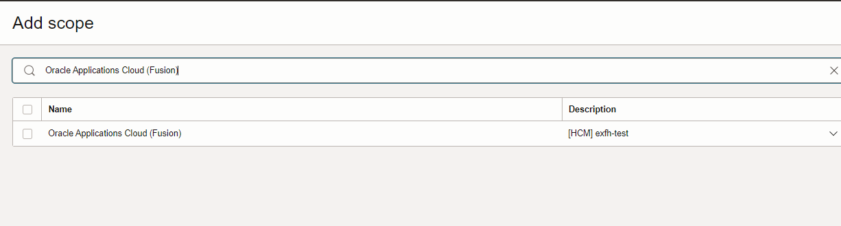 Add a scope. Here we are adding the Oracle Fusion Scope as a resource