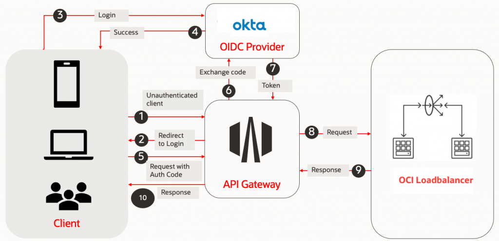 Our journey begins by integrating OCI API Gateway with Okta. Here, OCI API Gateway functions as the Resource Server, responsible for protecting your APIs/Application, while Okta serves as OpenID Provider, handling user authentication and issuing identity tokens.