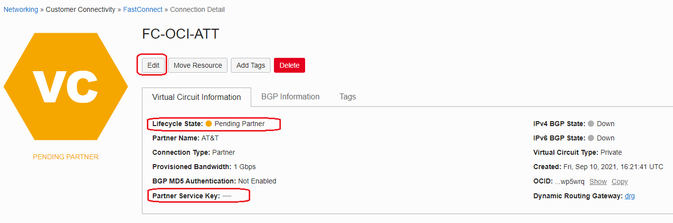 You still need to obtain the AT&T Service Key from the AT&T portal following the steps from above blog post, more precisely the steps from 1 to 8. The big difference is that you do not need to open any Support SR for provisioning the FC VC because now, with the new feature, we can Edit the Virtual Circuit and insert the service key obtained from the AT&T portal.