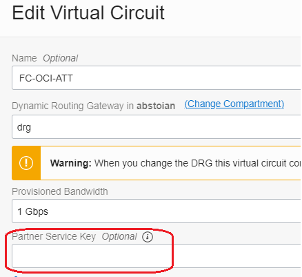 Editing the Virtual Circuit, the Partner Service Key can be changed: