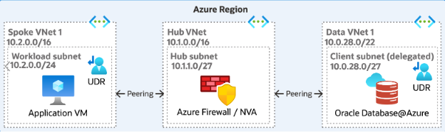 For more details on UDR required for this topology, please refer to ‘UDR requirements for routing traffic to Oracle Database@Azure’