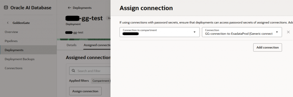 The last step is to assign the Connection created at step 2 to a GG deployment created at step 1. This is done from the Deployment menu. You can:
