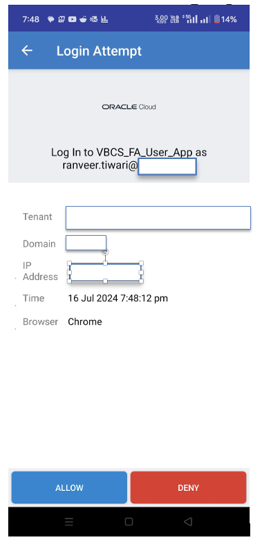 To demonstrate how MFA can be applied in VBCS application, we have created Demo VBCS app, please refer to Part2 – Extending Fusion Applications using VBCS – SSO Configurations of blog for details.